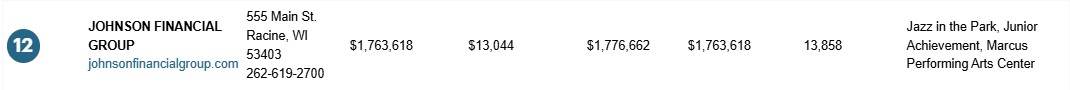 - Johnson Financial Group Named One of Wisconsin's Largest Corporate Charitable Contributors